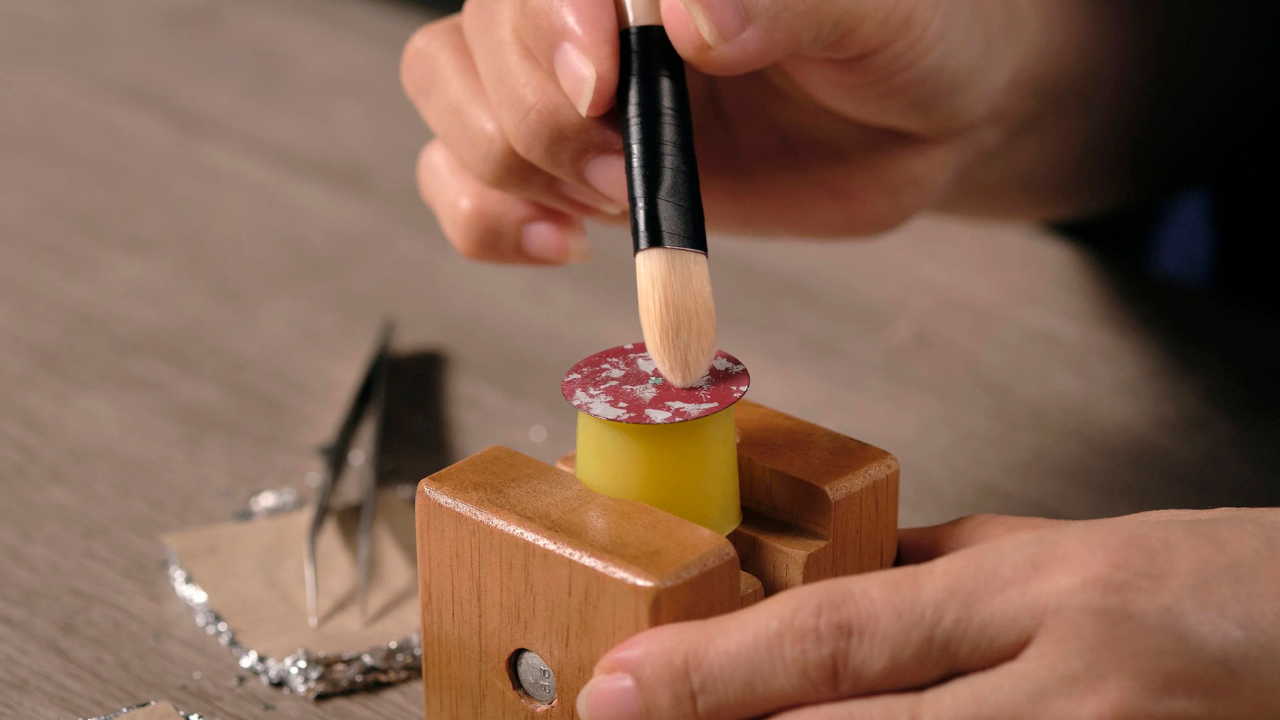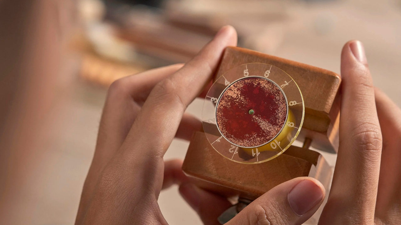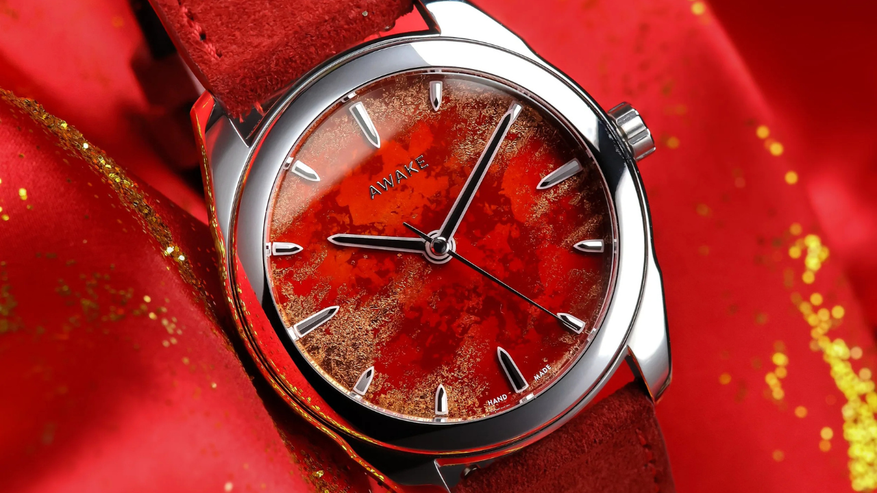 Inspirado em objetos rituais asiáticos, o Royal Red utiliza a tradicional técnica vietnamita Sơn Mài, um tipo de laca natural aplicada por meio de gestos ancestrais preservados há séculos. Cada mostrador é produzido artesanalmente no ateliê da Awake em Hanói, seguindo um processo lento e meticuloso.
