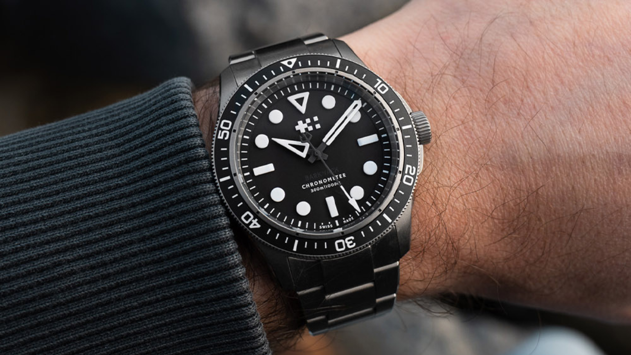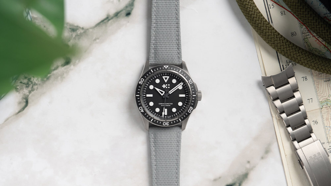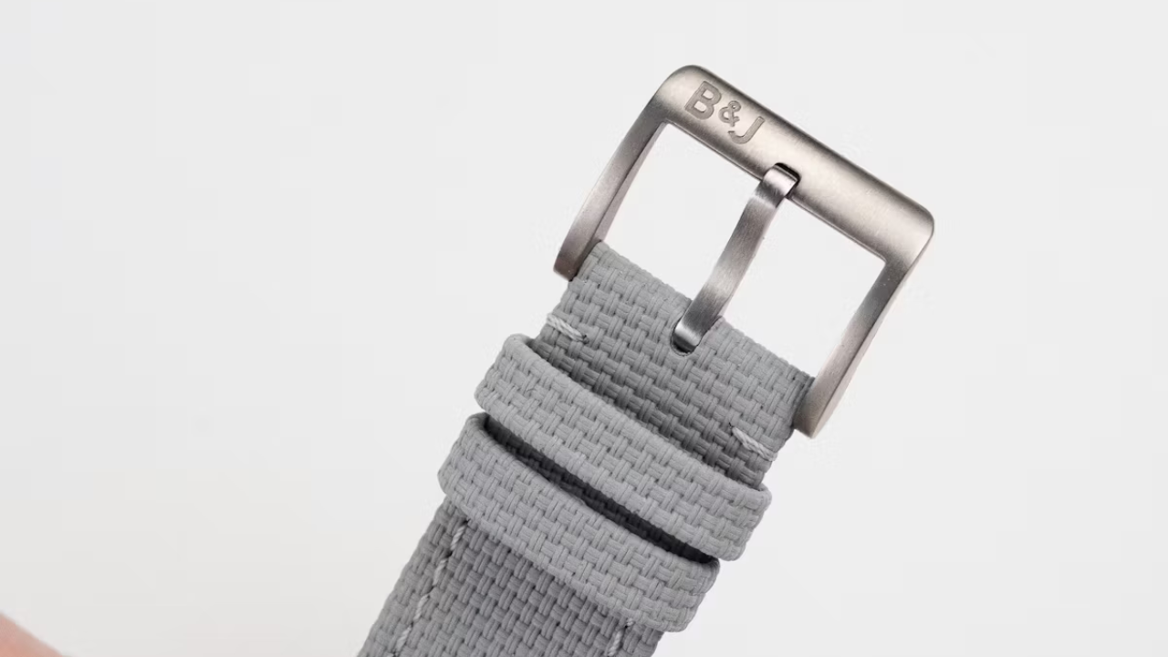 O modelo acompanha pulseira Bader em titânio e uma pulseira adicional Bark & Jack com revestimento interno em borracha, ambas equipadas com sistema de troca rápida.