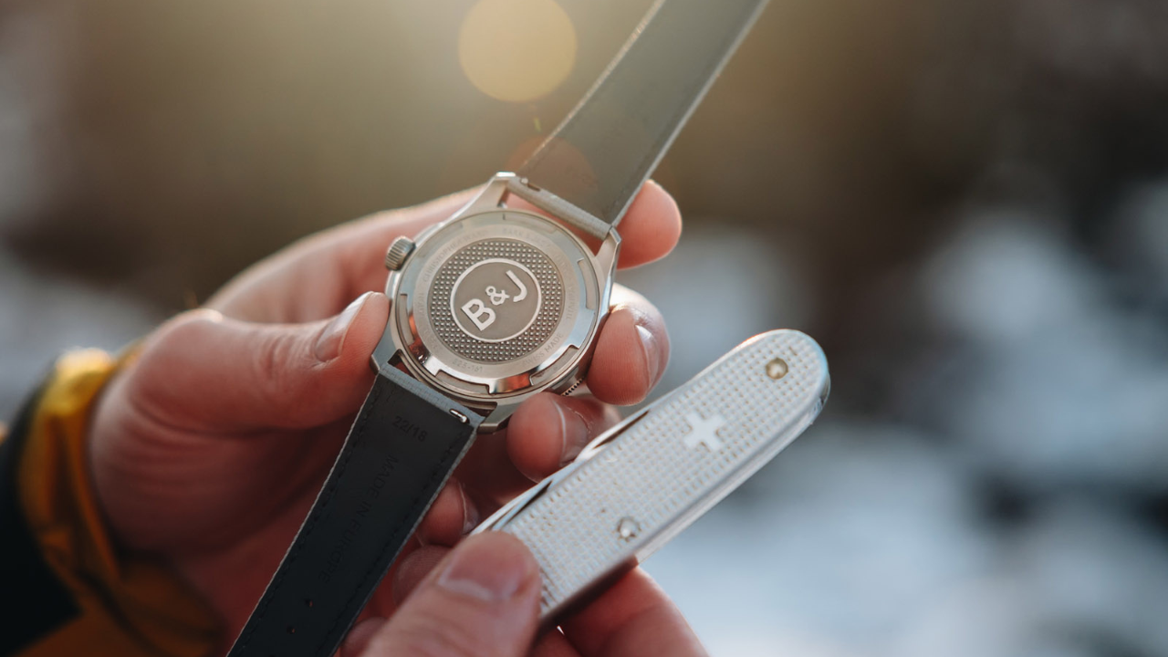 O fundo da caixa traz o logotipo Bark & Jack com um padrão inspirado no canivete de bolso pertencente ao avô de Barker, objeto frequentemente presente nos conteúdos do canal. O relógio também inclui uma assinatura escondida no mostrador, visível apenas quando iluminada por uma lanterna ultravioleta fornecida junto com o modelo.