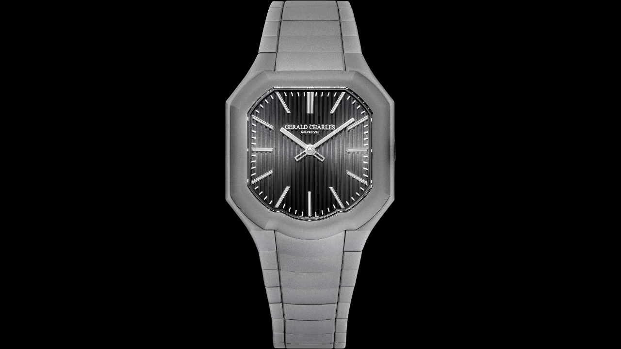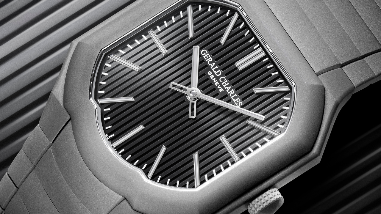 Na Boutique Edition, a Gerald Charles reforça esse conceito com superfícies mais escuras e uma presença mais escultórica. O bracelete mantém continuidade visual perfeita com a caixa, com construção invisível e parafusos imperceptíveis, escondendo a complexidade técnica da peça.
