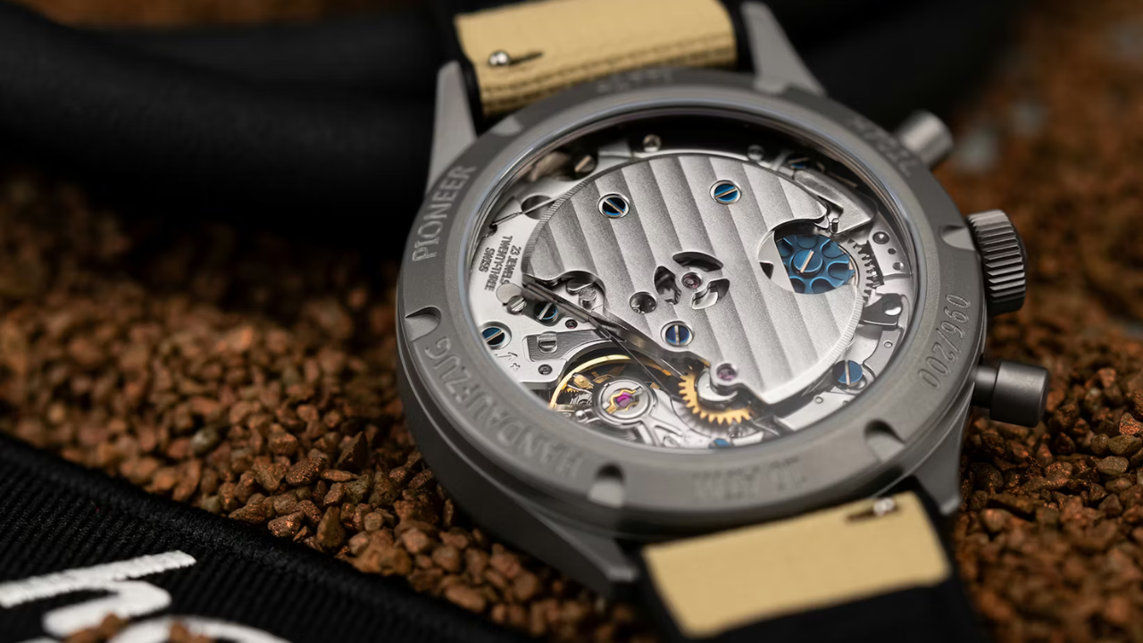 A inspiração estética vem de outro modelo da coleção moderna da marca, o PRIMUS Desert Pilot, um cronógrafo robusto pensado para ambientes extremos.