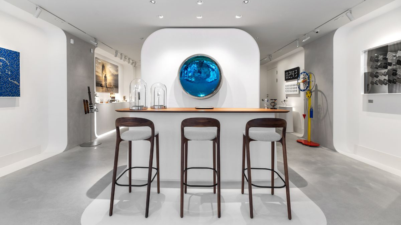 A solução foi criar um espaço próprio, pensado como ambiente híbrido onde máquinas relojoeiras pudessem coexistir com objetos mecânicos e esculturas cinéticas. O projeto começou em Genebra e se expandiu para outras cidades, tornando-se um ponto de encontro da comunidade da marca e dos artistas que orbitam seu universo.