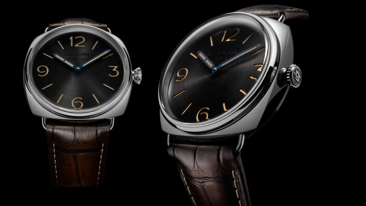 O primeiro é o Radiomir PAM01729, em caixa de bronze escovado, equipado com mostrador preto granulado em layout California, combinando numerais romanos e arábicos para facilitar a leitura em situações operacionais. O modelo é movido pelo calibre manual P.3000, com reserva de marcha de três dias e dupla mola principal.