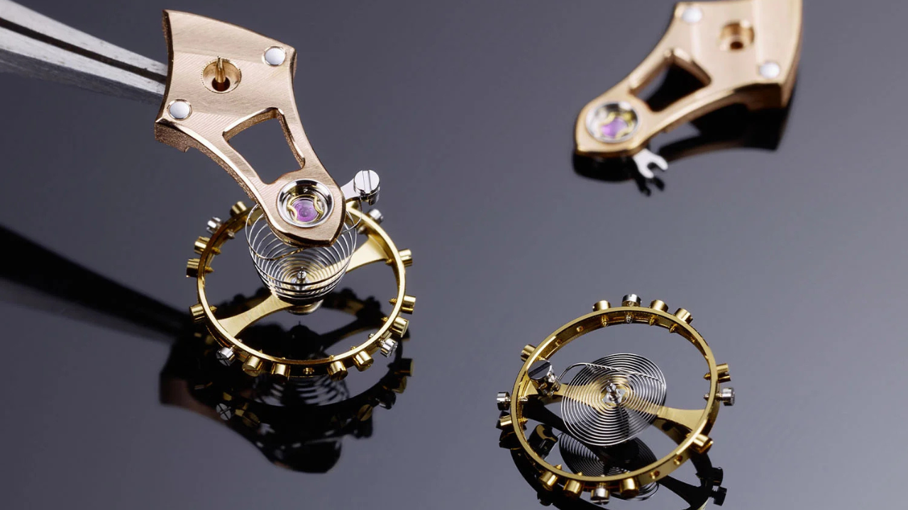 O balanço livre com espiral Breguet moldada manualmente oscila a 21.600 alternâncias por hora e oferece mínimo de 65 horas de reserva de marcha.